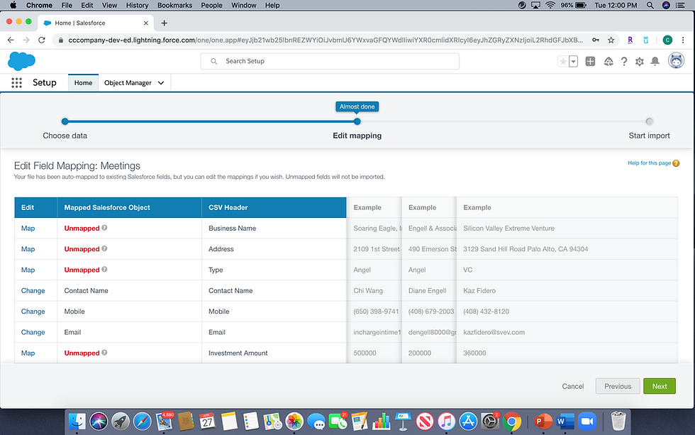 When I try and hit the next button after uploading my cvs file I downloaded. The next page appears with an error the mapped salesforce column object has 8 rows with a red unmapped alert which is causing me to not be able to move on. Is there anyway to fix this error from occurring?